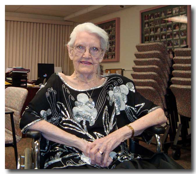Well, Gladys Alder may have been getting a bit frail, but at 94 she hadn't lost any of her zeal. Mom persuaded a fellow Oakhurst Towers resident, Glenn Tuthill, to perform a two-person play, Love Letters. They performed it the first time in December, but by popular demand, decided to present it again in February. CLICK HERE to read the complete program for Love Letters. A great evening! Mom and Glenn were fantastic. Not a dry eye in the house when done. | |||||