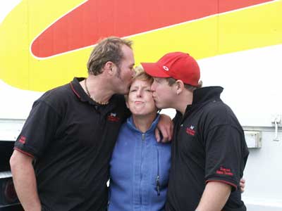 It's Monday evening, the day after our third race weekend at Invercargill's Teretonga race track. YEAH!!! We finally had a wonderful full DRY day of racing (Sunday). Damn. That was a long time coming! Not a totally dry weekend, you understand, but good enough and an absolutely a welcome finale for the three-race series. It really lifted everyone's spirits to have dry racing on Sunday and to put the cars away unharmed. (Well almost anyway--see below.) As noted in last week's NZ Update #8.5, we arrived in Invercargill on Thursday evening greeted by just awful, cold, blowing-sideways rain. Crap. This, after another travel week of great weather. The weather during the week has been exemplary, but come the race weekend it rains. Then, Thursday evening, it really looked like the pattern was going to repeat. In fact it looked so bad that Elaine decided to blow town. Not really. She'd planned all along to leave Invercargill early Saturday morning, and go to Auckland for a couple of days before returning to Houston. We talked to her Sunday evening and she had a nice tour out of Auckland to the Bay of Islands. Anyway, back to Invercargill news. Fortunately the weather on Friday was very nice and we were able to set up our pit area, do some minor service to the cars (brake pads), and get in three or four quality practice sessions to learn the track with nice (even SUNNY!) weather. That was most welcome. While the track is a rather simple layout (Sort of another LaJunta on steroids with a lot more twisties on the back side), going fast on the track (and a FAST track it is!) was difficult. Neither Diane or I felt we really had it figured out until Sunday. For you racer types, the cars were both re-geared (26:26 for me and 25:27 for Diane) for about as fast as the cars are capable of, faster than LaJunta or Pueblo. By Sunday we were both almost hitting red-line on the front straight. This means RJA was approaching 130 mph and Diane 120. Then, at the end of that front straight, there is the most amazing fast sweeper (shades of Pueblo). But it is a much bigger, faster sweeper and it comes around a full 220 degrees, not just 180. Man, it just goes on, and on, and on. It then leads into a series of twisties which were also very fast and hard to get right. But once we figured it out on Sunday you could really fly, flat out in 3rd, thru the twisties. Very cool. On Saturday there was some overcast and "spitting" rain. We decided that in NZ it "spits" in sheets and "drizzles" in buckets. Actually Saturday wasn't too bad compared to the other wet days. At least no torrential downpours like we had at Timaru. Even so, Diane wisely opted to skip her morning qualifying in the wet. But I forged ahead. While the qualifying session was only about 10 minutes long, it was basically on a wet track. For all you Formula Ford racers here's a hint-pump up the old Dunlops tires to 25 pounds, undo the rear sway bar, and it goes thru water like sliced butter. Very cool. I was able to qualify about 5th, but most of those were 2.0 Litre winged cars. Maybe 2nd or third in FFs. The Rainmeister LIVES! Then, alas, Saturday afternoon races (one each) were in the dry. And, as already noted, Sunday was totally dry and everyone got in three more very nice races. Diane and here nemesis, Phil Shires, duked it out in almost every session having a great time. I was able to run well, finishing 1st or 2nd in FF. The race groupings are so weird down here. Diane ran in a group with a bunch of twin cam Super-7 type cars. I ran with things like FF's fitted with 2.0L Toyota engines. You just never knew what the hell the cars actually were, complicated by the fact that they don't require class designation on the bodywork. So . . . you just run as fast as you can, never sure what it is you're actually racing against. The concept of "Legal and Proud" (if it existed here) would be joke. It's like the bad old days at VARA. And, of course, not knowing the individual racers introduces an element of caution. Discretion was the order of the day when being around strange cars/drivers on strange tracks. To everyone's credit we avoided any trouble. Terry did get tapped pretty good at the first Ruapuna event, but it only scrapped up the rear bumper a bit. Other than that, we got away clean. And there were a number of metal-to-metals during the three events. More than we would have at home, fur sure. As I said, the good day of racing on Sunday lifted everyone's spirits. Terry Hefty ran very well with his Elan. Dean Meiling had a good time, but the Super 7 that he was racing (Terry's car) was never quite on full power at full revs. We did a lot of Weber carburetor jetting and got it better, but Dean's top-end was a bit compromised. Nevertheless, we kept all the cars running for all three weekends with only minor adjustments here and there. WHEW! Oh, did I say "all the cars"? Oops, not quite. Poor Paul Morgan continued to accrue points for the trip's hard luck award. Actually, he was the only one of us to accrue any hard luck points. In addition to his previously documented hard luck tales, on Saturday afternoon he sheared all the half-shaft bolts on the left side. But since not all of his luck can be bad -- there was no collateral damage as the half-shaft stayed in place and didn't flog around. Miracle man Bob Hildreth, Paul's ace mechanic who traveled with him on this trip, was able to get it fixed that evening. But then on Paul's last race Sunday afternoon something went sour on the engine after a few laps. I was behind him at the time and saw the puffs of smoke. Not good. He quickly slowed and when I went around the engine was really off song. He was able to limp back in but they just packed it in, not even worrying to analyze what went wrong since it was his last race anyway. It'll keep until the car gets back to Denver. So, hands down, Paul gets the hard luck award for the trip. We did manage, however, to convince him of a c'est la vie attitude about his se