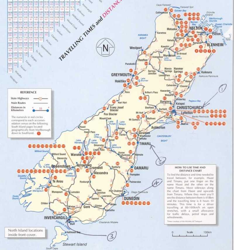 The map below is of the South Island and will give you