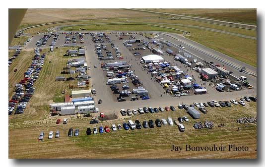 This aerial photo at left shows the great crowds attending the Inaugural Season "Straw Hat Gala." The thousands able to attend were treated to a fun day with great weather and lots to do for the entire family. HPR wishes to thank all those who attended, all the vendors, volunteer workers, and those who donated the exotic cars, Miata racecars, and cars and motorcycles for the show. All combined for an historic and wonderful day. | ||